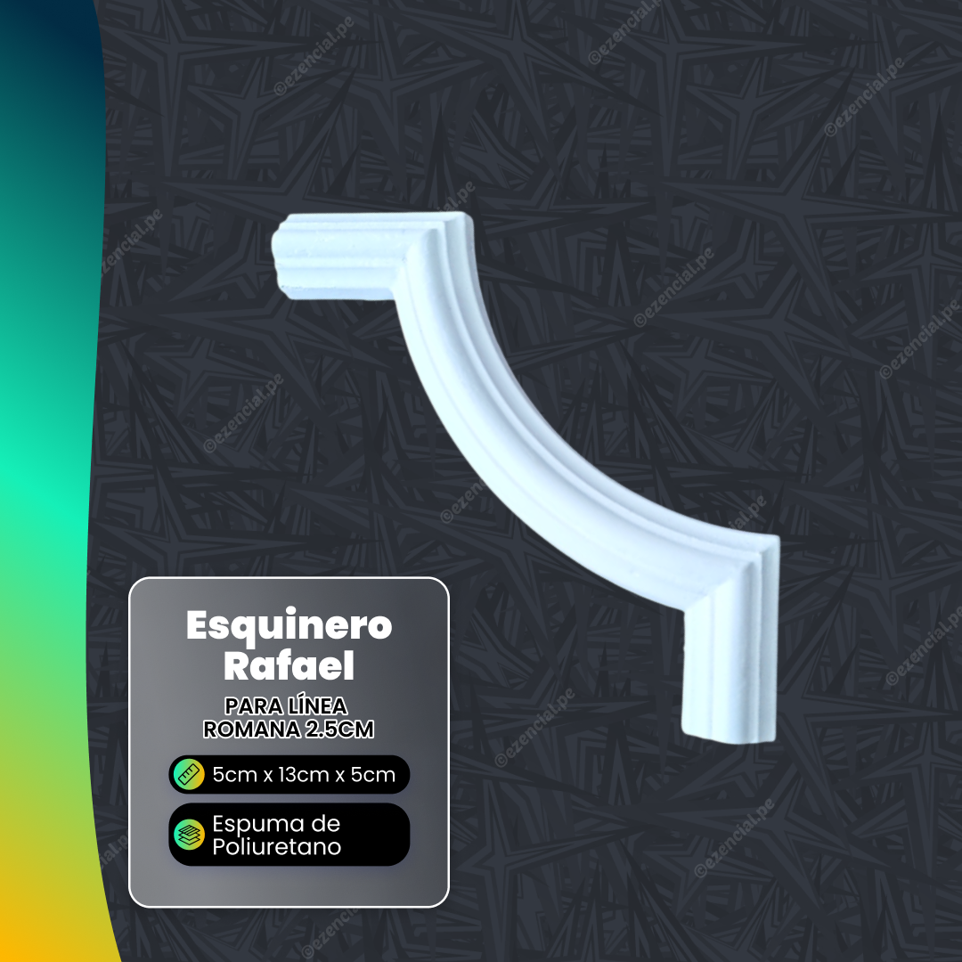 Añade un toque de encanto y elegancia a tus rincones con nuestro Esquinero Ondulado Rafael de 5cm x 13cm x 5cm. Fabricado con Espuma de Poliuretano de alta calidad, este esquinero es la opción perfecta para realzar la belleza de tus espacios. Su diseño intricado y y la rapidez al momento de su instalación lo convierten en un complemento ideal para proyectos de diseño interior. Dale vida a tus esquinas con este esquinero de florituras excepcional.
